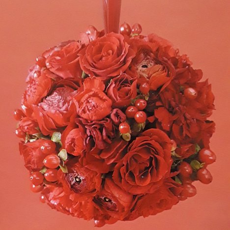 A wedding pomander is sometimes referred to as a "kissing ball". If you plan on having an attendant or flower girl carry the pomander, however, you want to be sure the ball of florist foam is small. The weight of the flowers and wet foam can be heavier than you think!