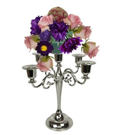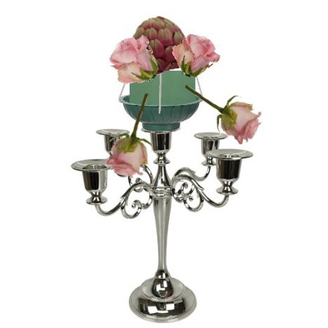 Candelabras typically have flowers spraying downwards, rather than upwards like an urn arrangement. If you are only using the candelabra as a flower stand, then you can design up and outwards like any other stand arrangement.