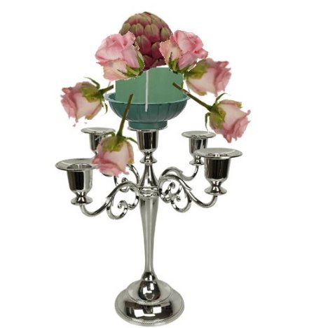 Candelabras are usually viewed from all sides, so you need to turn the arrangement and keep the insertions of the flowers balanced.