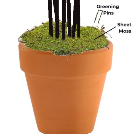 Using greening pins, secure the sheet moss over the top, tucking it around the stems.