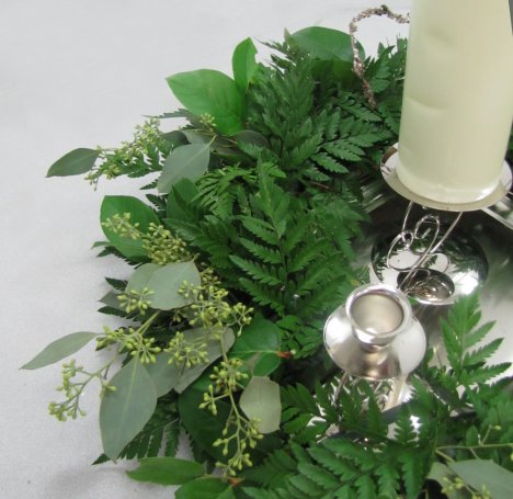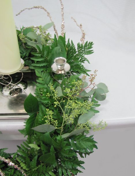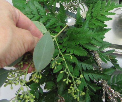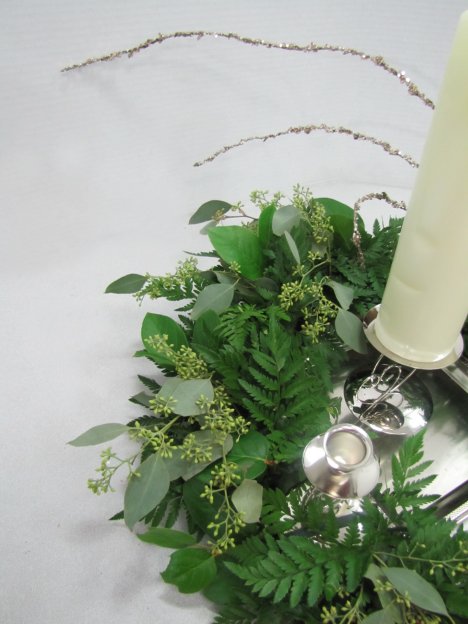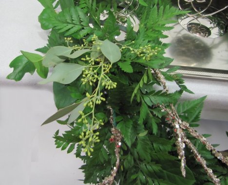 I trailed the seeded eucalpytus down on the left side and the kept the direct going by pointing it up on the right side.