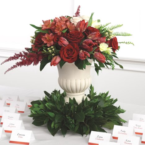 This wedding urn centerpiece can be designed for many different uses. Consider it for church altar decorations, a buffet table, a centerpiece on a bridal table or even for all wedding reception tables.