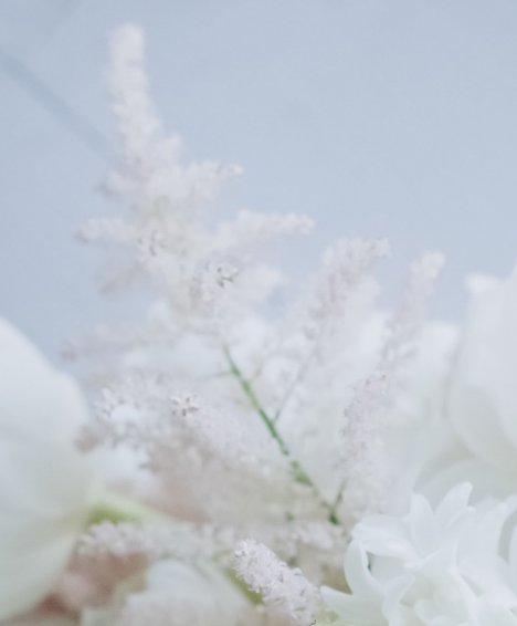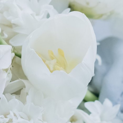 White hyacinths have a delicious scent and need time in the warmth to fully open. After opening, they should be refrigerated. They are a lovely addition to any white bridal bouquet.