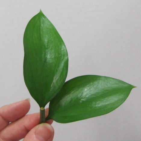 The leaves have a slightly cupping shape, but are broader than the narrow leaves of Italian Ruscus.