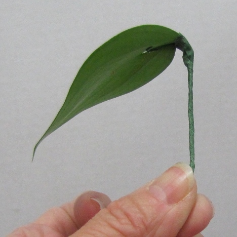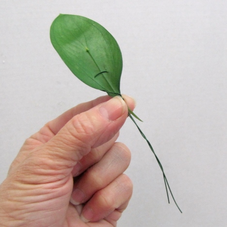 Bend the wire down parallel and twist around the bottom of the leaf.
