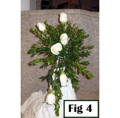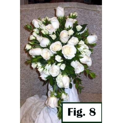 This white cascade bouquet is filled with very simple flowers. The instructions below are for a rose cascade, but the techniques are the same even if you change what type of flowers you use.