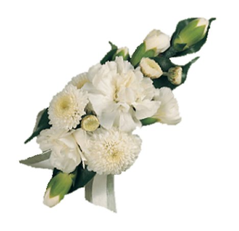 White flower corsages can be made of many different flower varieties and a few basic styles. (Hint: check out the boutonniere section - many easy corsages can be found there and stylized for a woman with just the addition of a pretty bow).