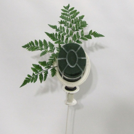 The holder must be secured firmly in an upright position. You can use a vase with a narrow neck. Fill it with marbles or rock so that it doesn't tip forward as your design gets heavier with flowers. (Trust me - flowers in wet foam are heavier than you think!)