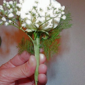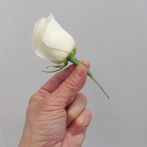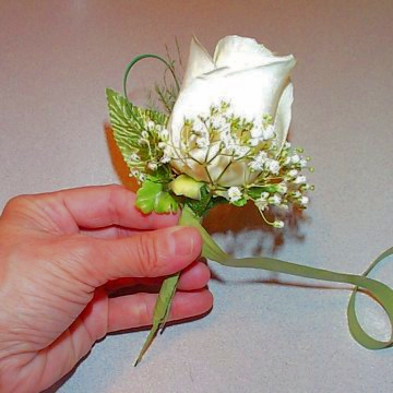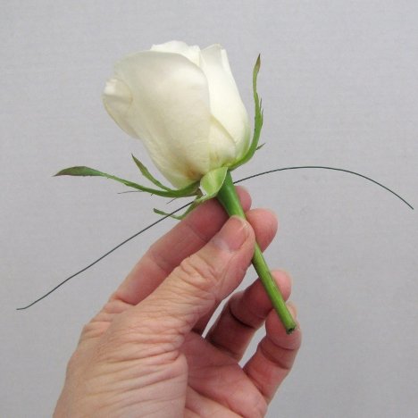 A classic white rose boutonniere is fairly straight forward. Wiring roses for use in corsages or boutonnieres is the same. Wash your hands before handling roses - the oils on your fingers can cause bruising or discoloration on tender petals.