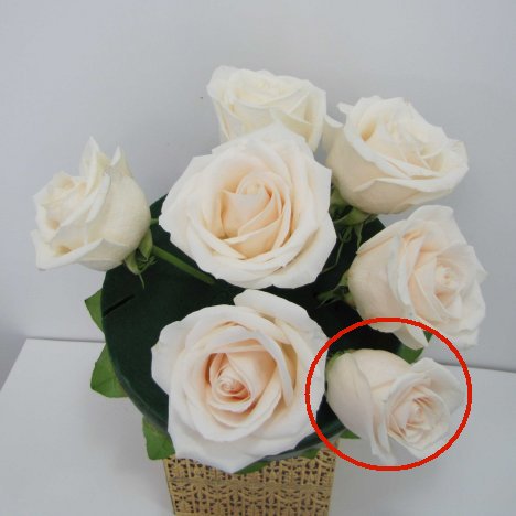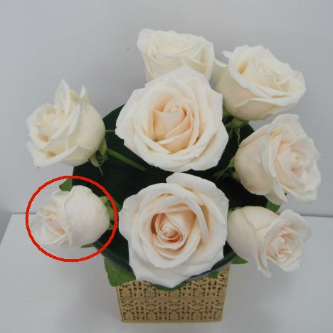 These outer roses fill in the blank holes, giving the bouquet a more even look.
