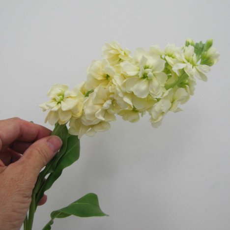 Stock flower is one of my favorites for wedding work. The clustered blooms erupt from short laterals all the way down a spring green stem.