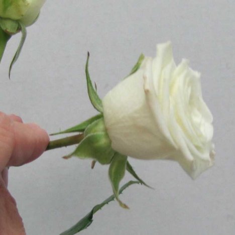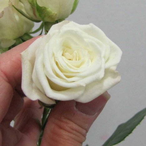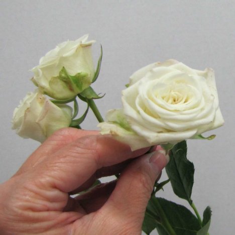 Like standard roses, the guard petals are left in place when the spray roses are packed for dry shipment. You'll want to leave these outer petals on until you are ready to design so they will protect the inner perfect petals of the miniature rose.