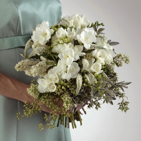 White wedding bouquets can be made up of many different flower varieties. Feel free to substitute other colors or flowers if you wish to put your personalized touch on this flower bouquet. To create a similar bouquet, you'll need the following: