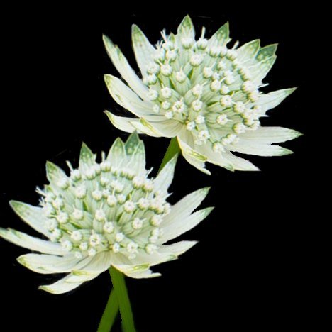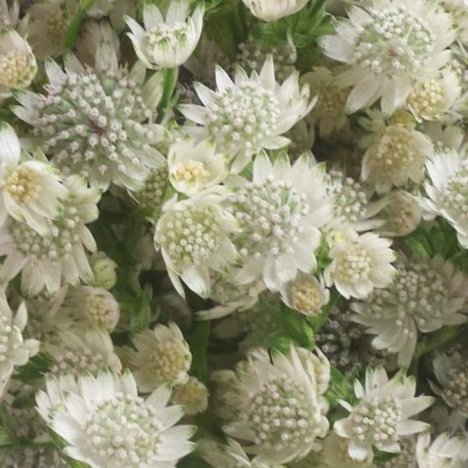 Astrantia comes in creamy shades of white, a soft violet color and shades of pink. The stems are slender, sometimes with several laterals off one stem. Smaller flower heads are clustered in groups on a stem.