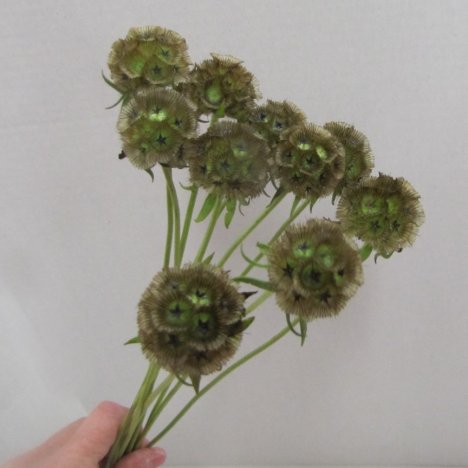 Scabiosa pods add texture and interest to all flower designs. A bunch come on long, slender stems with no leaves or greenery.