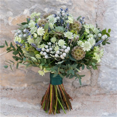 A winter wedding bouquet brings different styles to mind, but I think this cool number filled with frosty whites, cool greys and touches of blue is perfect!