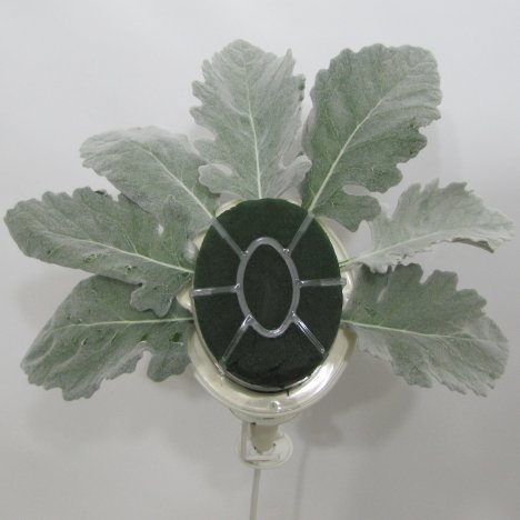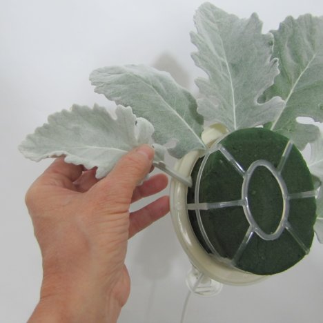 I started the design by encircling the out circumference with Dusty Miller leaves.