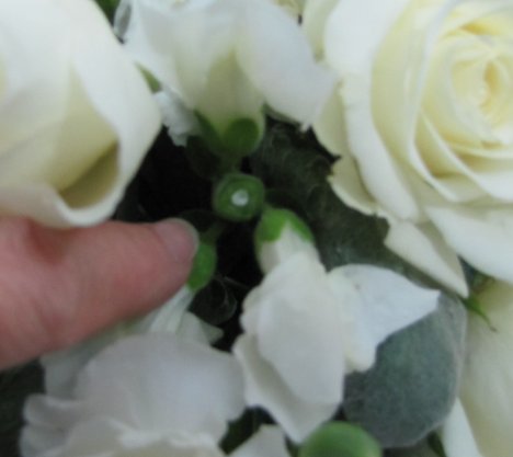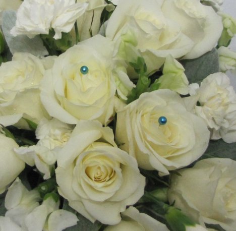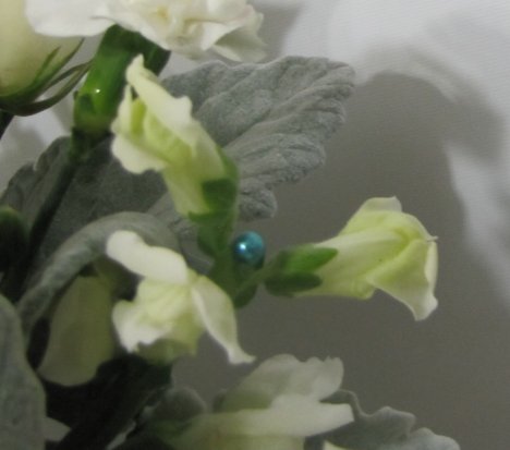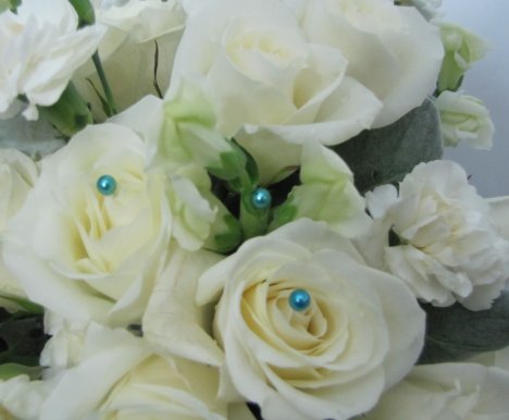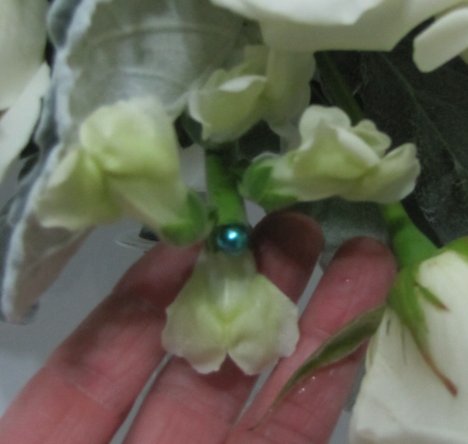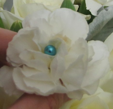 Add as many or less as you prefer in your own bouquet design. I find color pearls a great way to add unusual colors that the flowers are not available in. Since I like my flowers "natural" and not artificially dyed colors, bouquet jewels and ribbon is a great way to add color accents.