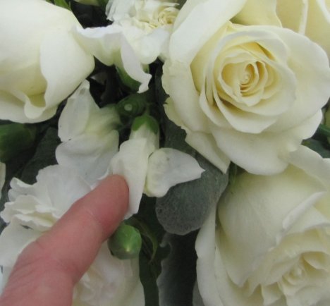 Here is a tucked piece showing between two rose heads.