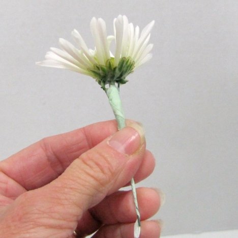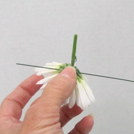 Another wiring method is to insert the wire into the bulb or calyx of the flower, piercing the bulb as you do so.