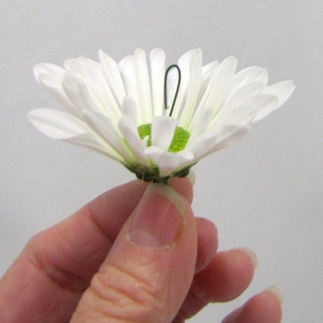 After the wire comes up thru the flower head, bend the wire downward to form a hook.
