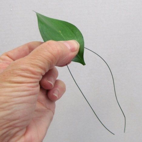 If fresh leaves are droopy, you can give addition support with a taped wire loop behind the single leaf.