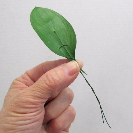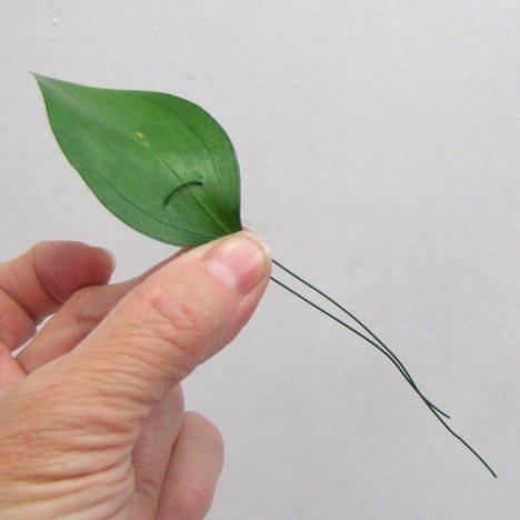 The leaves will tear easily, so you must slide a wire in a stitch pattern behind the leaf's veins.