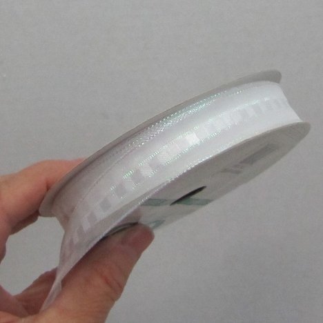 This is an example of #5 ribbon. I like using ribbon that has very thin wire or fiber optic (like fishing wire) on the edge. It makes a nice crisp bow that is easy to make and stays looking good even through packing and transporting to the church
