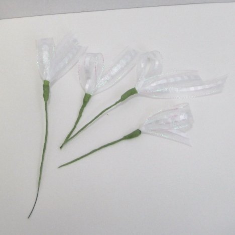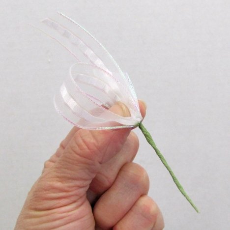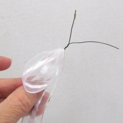 Have cut wire handy, ready to wire the loops of ribbon with. These loops are going to be taped to the other stems eventually.