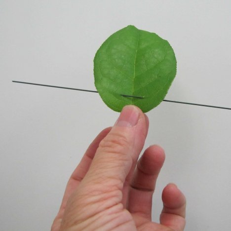 Take a 22 gauge wire and pierce the leaf in a stitch pattern.