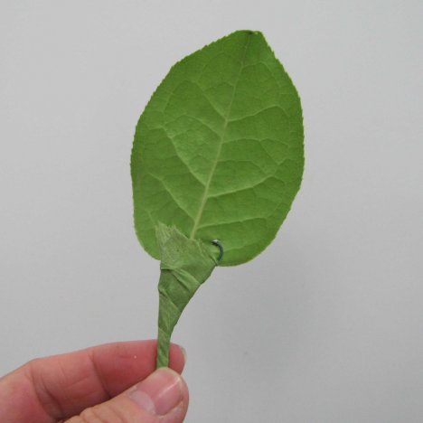 Squeeze your thumb and forefinger on the stitch and bend the wires downward to parallel the leaf's own stem.
